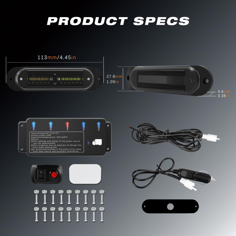 - 【Easy To Install】: Free wiring installation for the main control box of this emergency strobe light, and we have equipped 11.5 inch long wires and associated protective safety pads and screws to meet the installation needs of various vehicles.