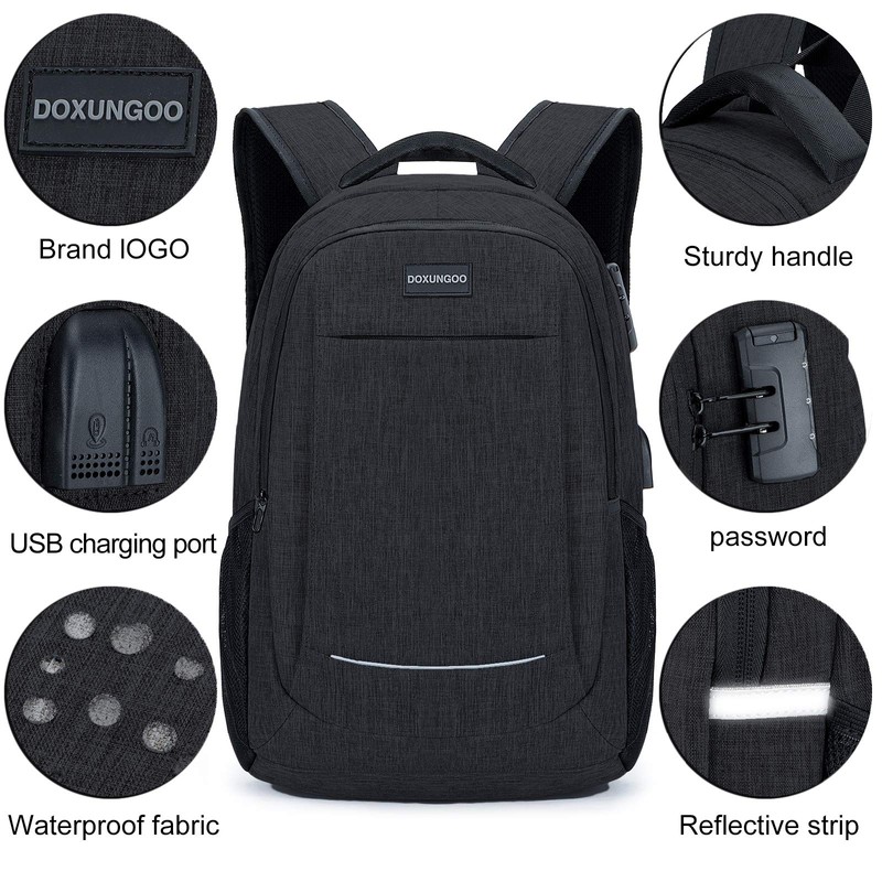 DOXUNGOO Mochila para portátil, Mochila antirrobo Unisex con Bloqueo Mochila portátil Delgada con Puerto de Carga USB y Puerto para audífonos para Mujeres y Hombres, hasta 15.6 Pulgadas (negro)