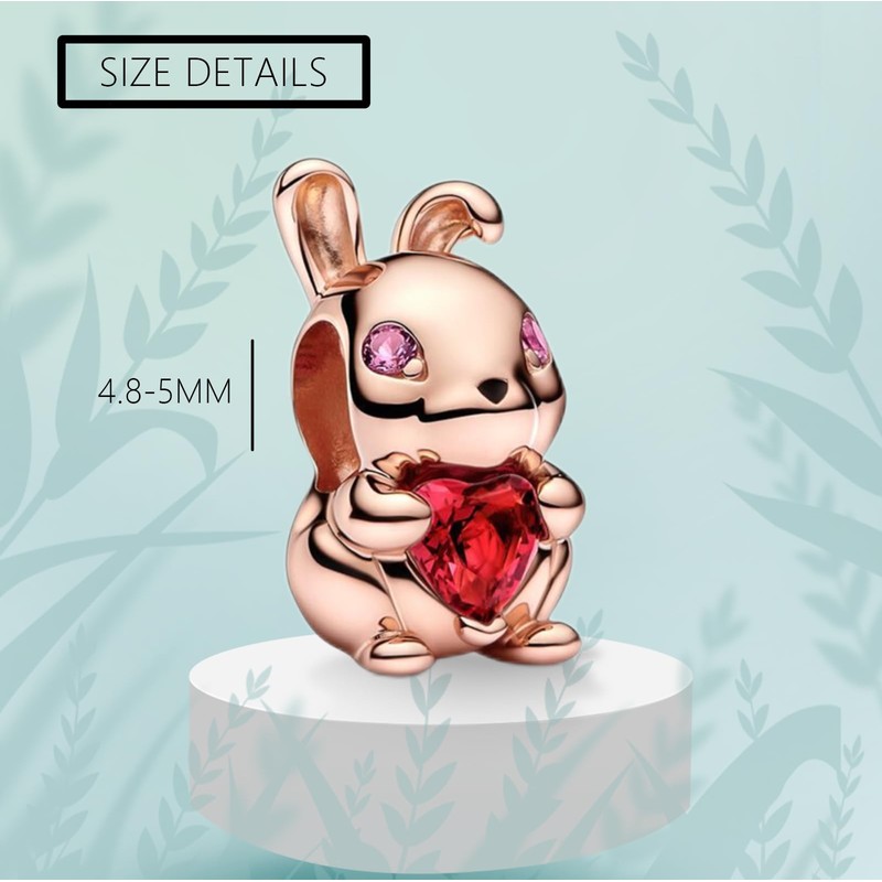 Doyafer 925 sterling silver gold rabbit charm bead, for women's bracelets Ruby bead string Gifts for family and friends