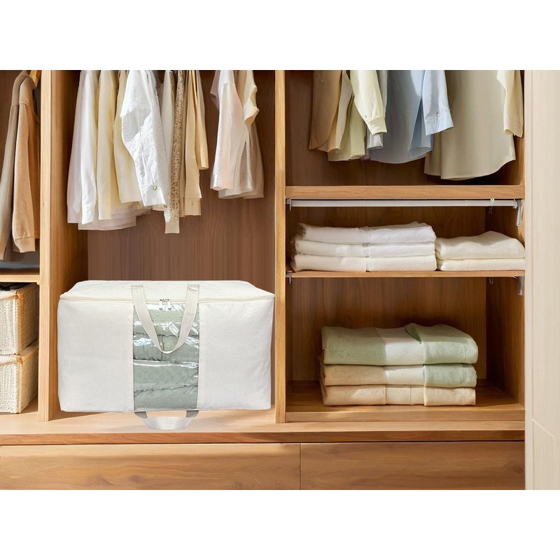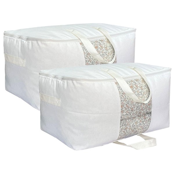 DoYiKe Soft Canvas Clothes Storage Bags with Four Carrying Handles and Clear Window, Closet Organizer for Clothing, Blankets Sheets Pillows and Bedding, 55L, 2 Pack, White