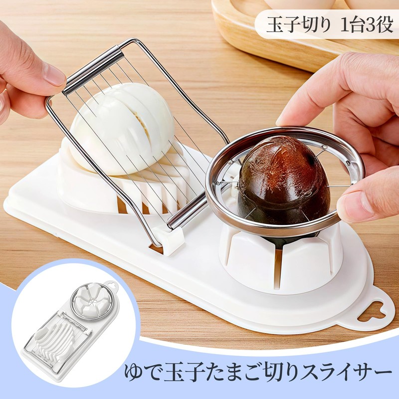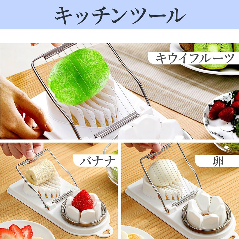 This "Boiled Egg Slicer" is a ring cutter? Flower shape cutting? Equipped with 3 modes: cutting into 6 cubes. It can be beautifully molded even with soft semi-ripened eggs, perfect for making sandwich ingredients and salad toppings. The combination of ABS plastic and 18-8 stainless steel provides a smooth cutting edge that is comparable to the yolk adhesion.