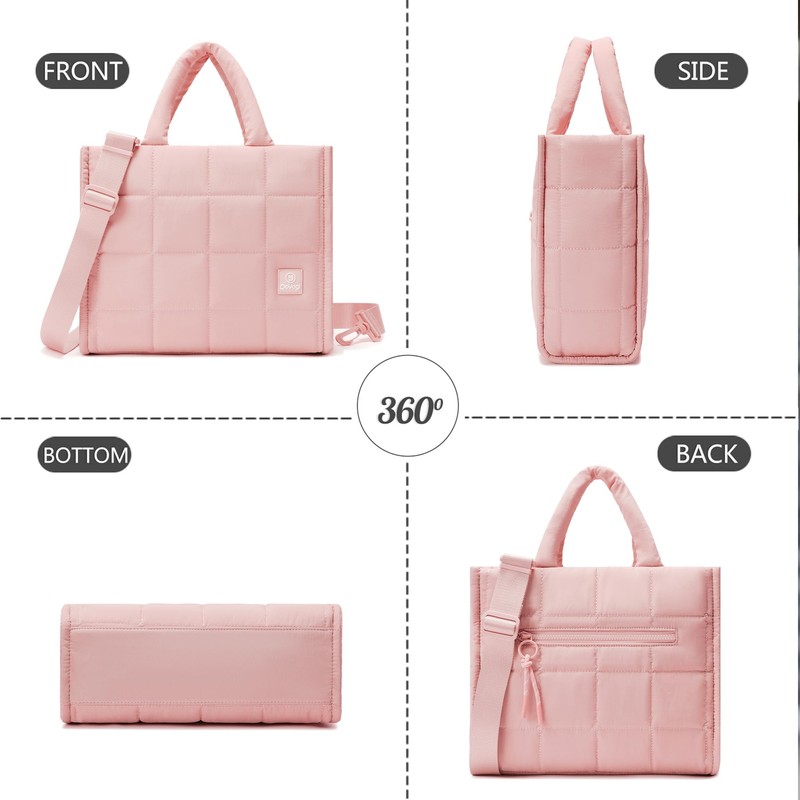 DOYOGI Quilted Crossbody Bags for Women,Small Tote Bag Shoulder Bag,Puffer Weekender Overnight Bag,Purse Handbag Organizer (Light Pink)