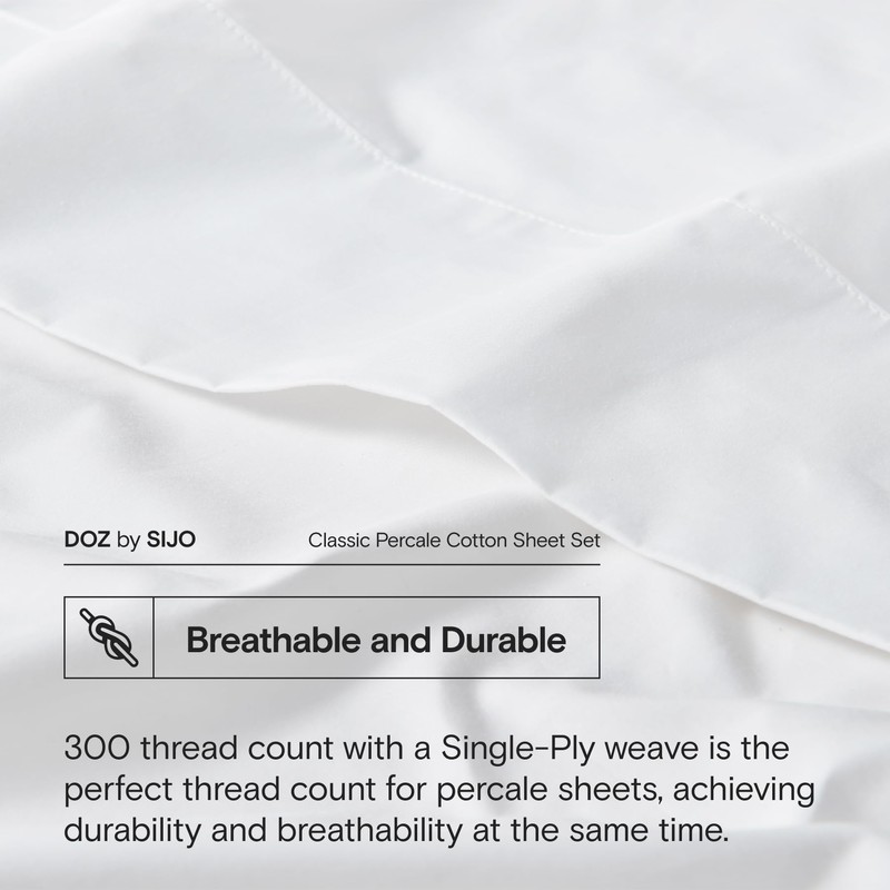 - SINGLE-PLY WEAVE: We use only single-ply cotton fabrics that are 100% genuine long fibre cotton yarn. Single-ply yarn is made using one long-staple cotton fibre to create a thread. 300 Thread Count is the perfect thread count for Percale sheets, It is tightly woven enough to ensure premium durability while make sure the sheets are extremely breathable and cool to the touch to give a good and cool sleep.