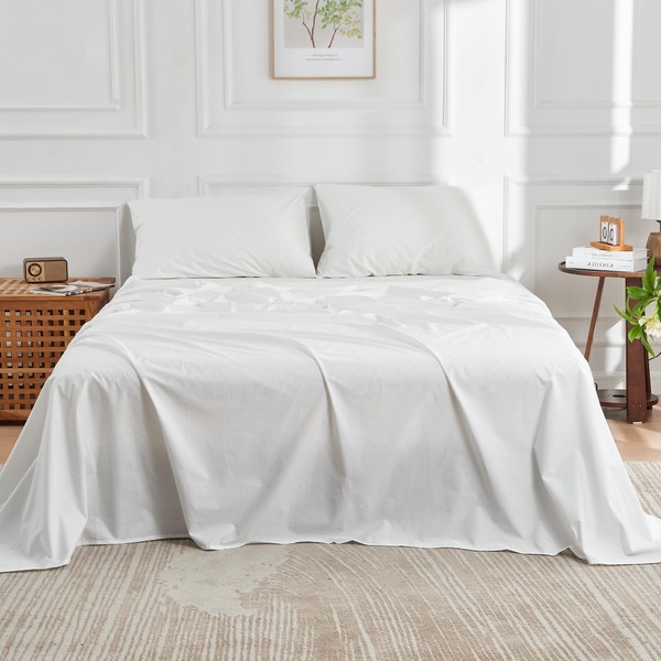 DOZ 100% Long Staple Cotton Sheet Sets, Classic Crisp Percale Weave, Breathable, Matte Finish, Hotel Style, Durable, 3pc – 2 Pillowcases 1 Fitted (Snow, King)