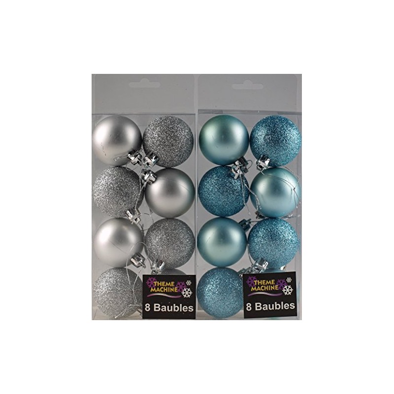 DP Set Of 16 Ice Blue And Silver Christmas Tree Baubles Decorations