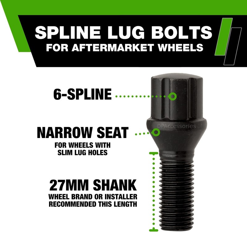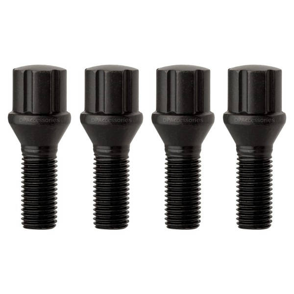 DPAccessories Black M12x1.50 Lug Bolts for Aftermarket Wheels | Spline Bolt | 27mm Shank | Pack of 4 | BS27K2HE-BK04004