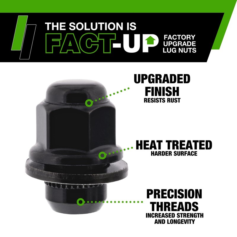 - A Real Problem Solver: OEM lug nuts wear over time, can swell, and are expensive to replace - FACT-UP solid steel one-piece replacement lug nuts have an upgraded plating and material