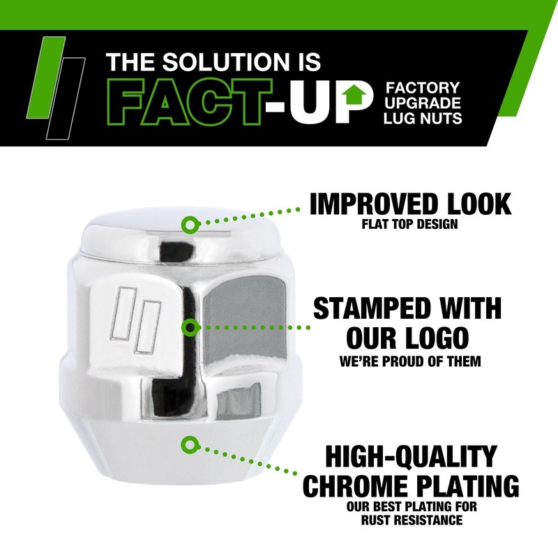 • A Real Problem Solver: OEM lug nuts wear over time, can swell, and are expensive to replace - FACT-UP solid steel one-piece replacement lug nuts have an upgraded plating and material