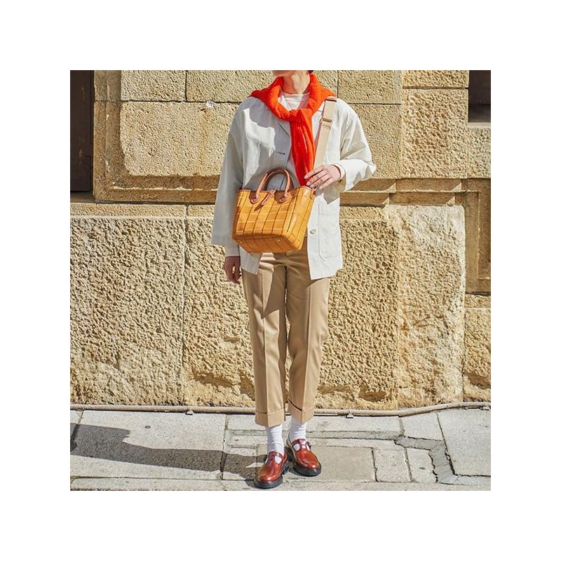 - 【商品仕様】幅:25cm(スナップボタン装着時20cm)×高さ:22cm×マチ:12cm、持ち手(幅:11cm×高さ:8cm)、ショルダーストラップ(80~120cm)、重さ:約 560g、素材:牛革/グラブレザー、対応サイズ:A5 【収納】本体内部:オープンポケット×2、ジッパーポケット×1、付属:底びょう付き