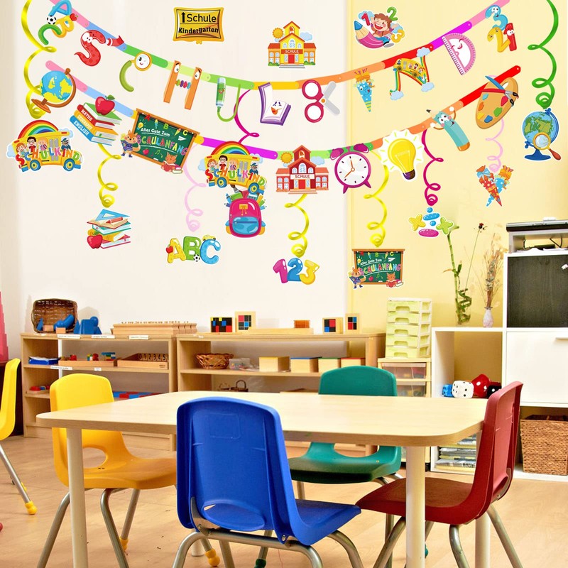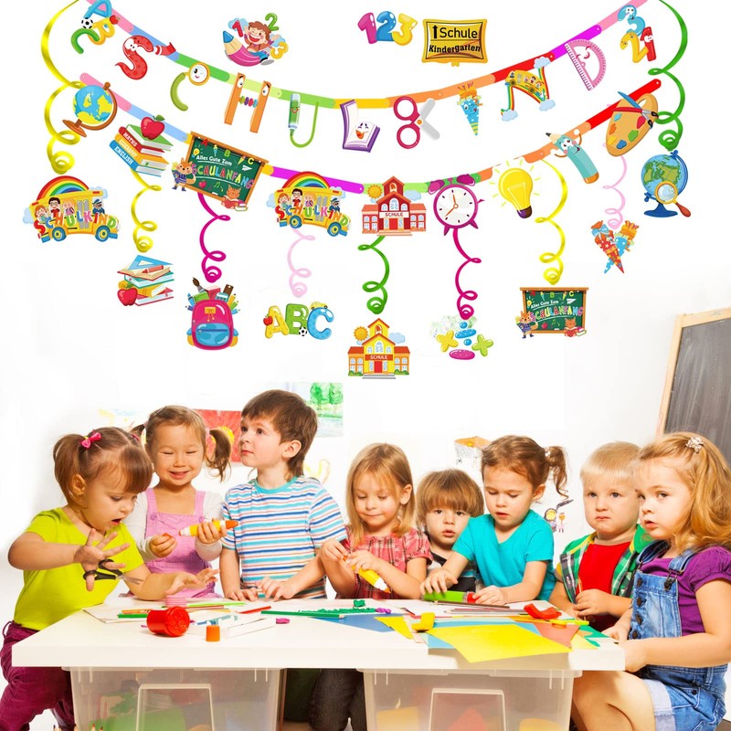 • Easy to Assemble The school child garlands enrolment ceiling hanger spiral ABC sugar bags garland are easy to assemble and can be quickly hung with the included hooks and ribbons. Ideal for parents and teachers who need a quick and easy back to school decoration.