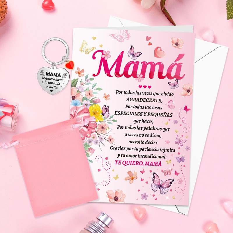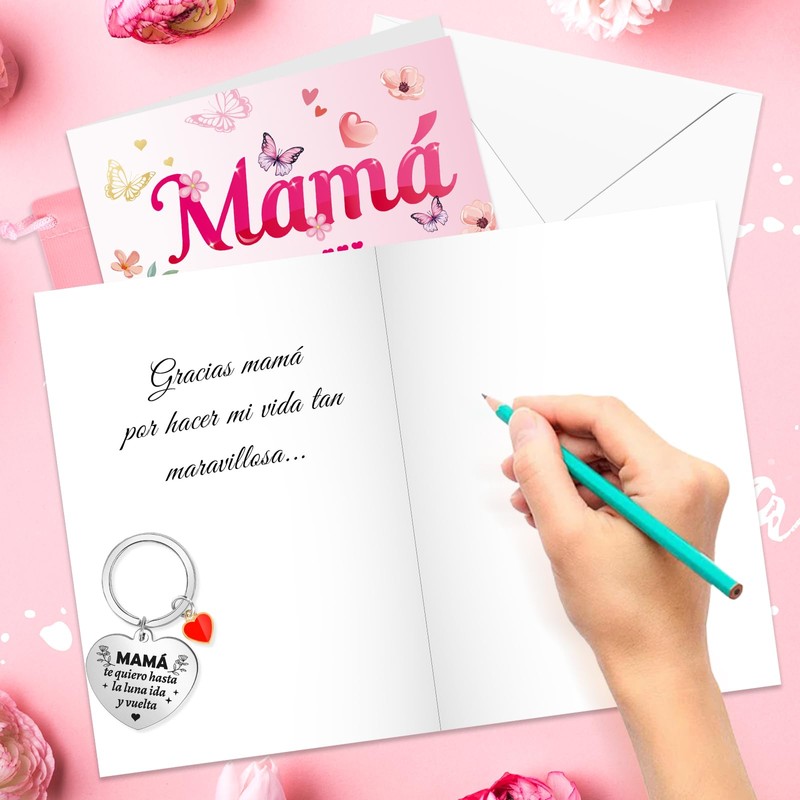 DPKOW Regalo para Mamá, Te quiero Mamá Tarjeta con Sobre + Llavero para Mamá Regalo Feliz Día de la Madre, Gracias Mamá Tarjeta Llavero para Mamá Navidad Cumpleaños Regalo San Valentín Mamá