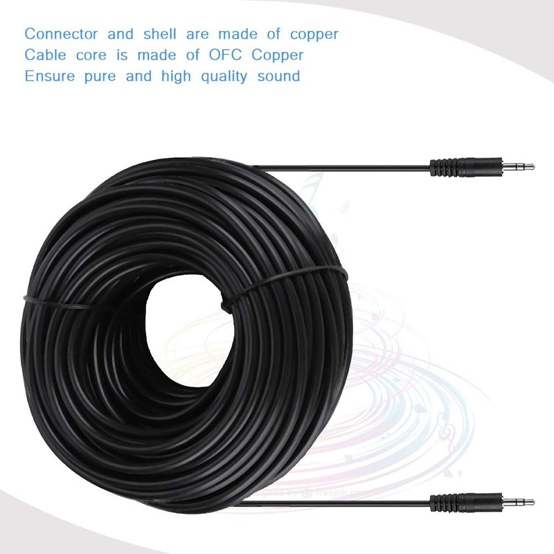 Dpofirs 3.5mm Male to Male Shielded Audio Cable, 30 Meters, Black, PVC, Copper Core, For Speakers, Computers, HiFi Audio Systems