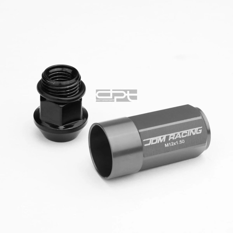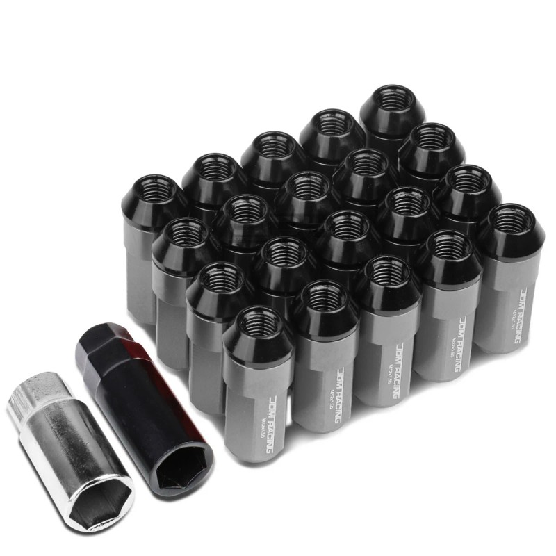 DPT Motorsports 20 M12X1.5 53MM TALL 23MM OD GUN METAL ALUMINUM JDM LUG NUTS WITH CAPS+ADAPTER