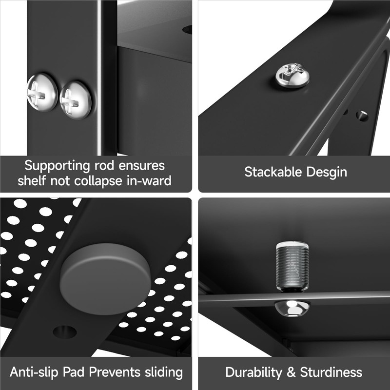 - Premium Quality: The kitchen counter shelves is made of high-quality metal, which are sturdy and durable. The surface has a thick powder coating, which plays the role of anti-corrosion. The Stable construction allows the multifunctional storage shelves to hold up to 100 lbs, our cupboard organizers is strong, rustproof, and easy to clean, ensuring long-lasting use