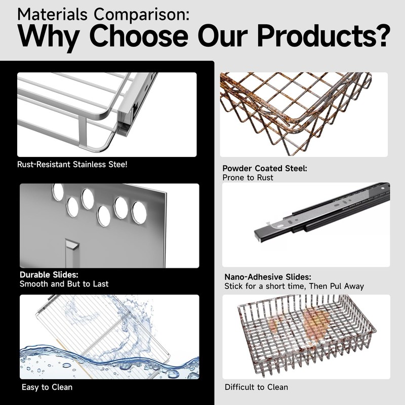 • Smooth Slide-Out Organizer: Industrial-grade ball bearing system ensures quiet and smooth sliding every time. Don't have to worry about noise when you pull out and push in