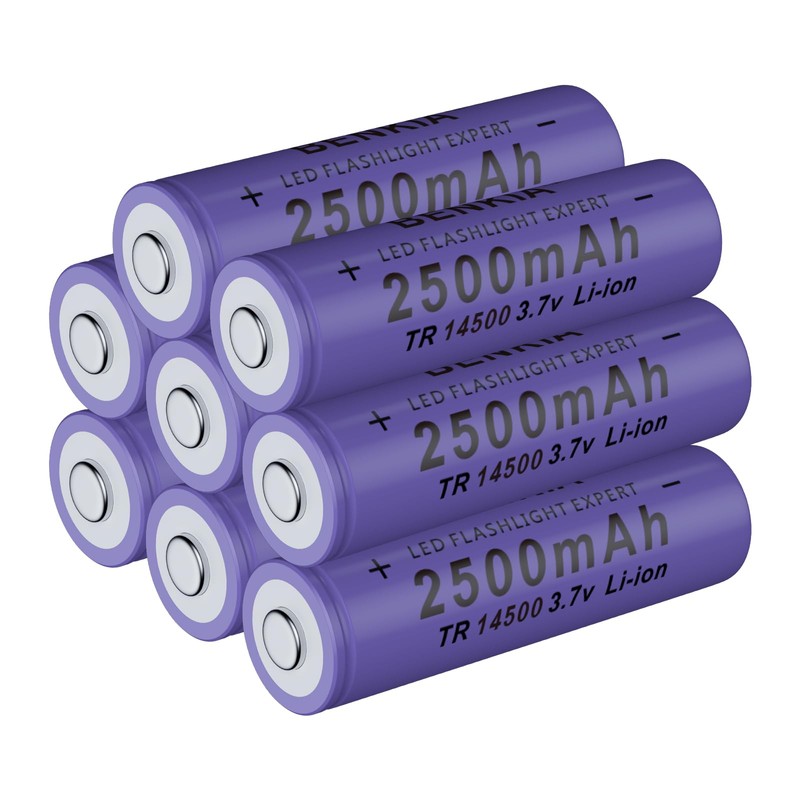 DQGG 14500 Rechargeable Batteries Button Top 3.7V 2500mAh for Flashlights Headlamps (8 Pack)
