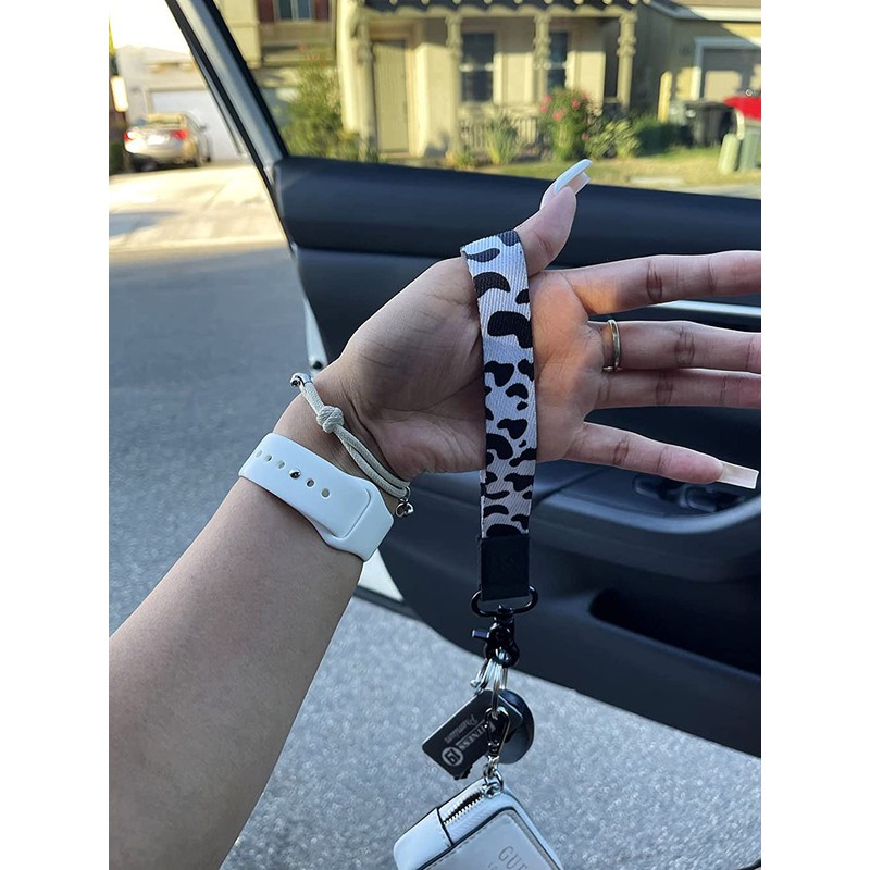 - cow print wristlet short lanyard for keys for women wrist strap for keys wrist keychain for keys