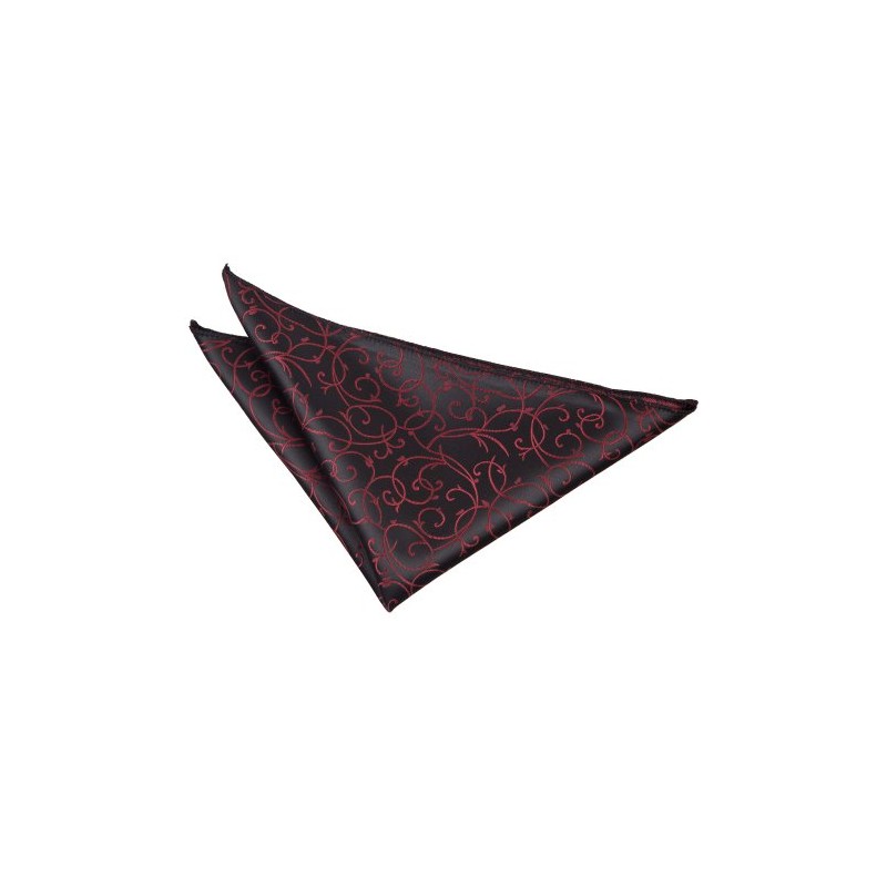 DQT Woven Swirl Floral Wedding Pocket Square Handkerchief - Black & Burgundy