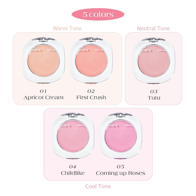 Dr.Althea Dear.A Fluffy Blush -An airy, long-lasting pressed powder blush, Effortlessly blends and layers, creates a natural, soft, healthy flush, Vegan formula (01 Apricot Cream)