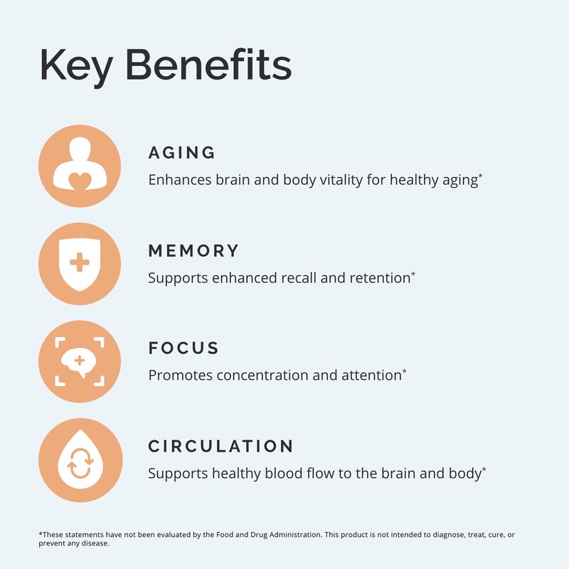 - ENHANCE BRAIN BLOOD FLOW - The better the brain’s circulation, the more oxygen and nutrients it can receive to support memory all through life.