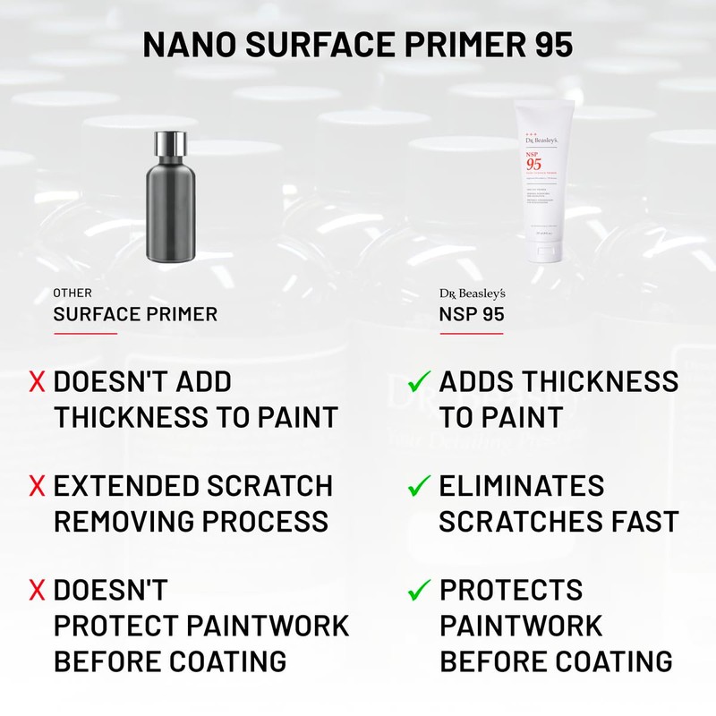 - Quickly Removes Scratches & Oxidation - Uses microsphere abrasives to eliminate scratches fast with exacting precision. Nano Surface Primers use a combination of microsphere abrasives and nanogel technology to simultaneously remove defects and build a ceramic coating foundation.