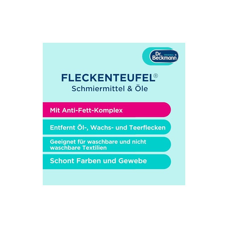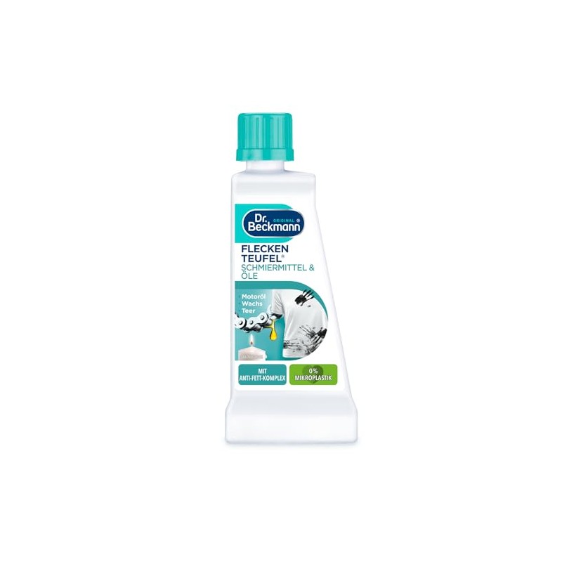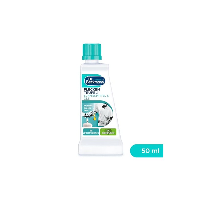 Dr. Beckmann Flüssig Fleckenteufel Schmiermittel & Öle | Spezialfleckentferner gegen Ölflecken, Teer und Kerzenwachs| 50 ml, Frisch