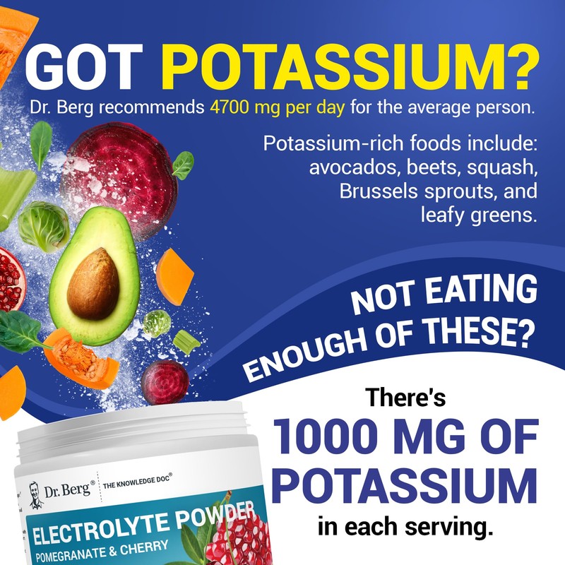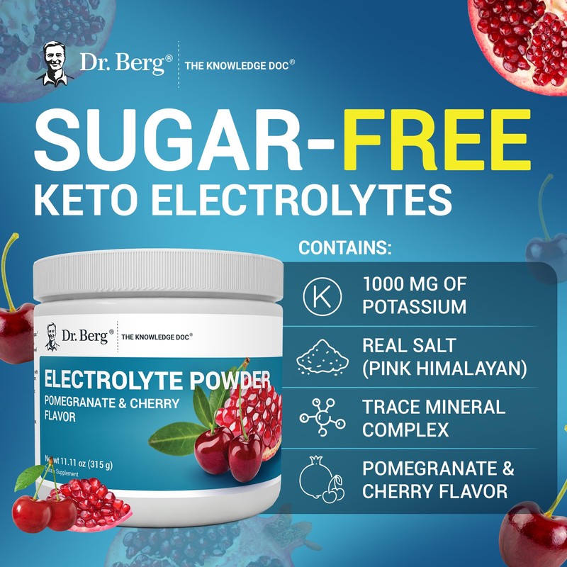 Dr. Berg Nutritionals Dr. Berg Zero Sugar Hydration Keto Electrolyte Powder - Enhanced w/ 1000 mg of Potassium & Real Pink Himalayan Salt (NOT Table Salt) - Pomegranate and Cherry Hydration Drink Supplement - 50 Servings