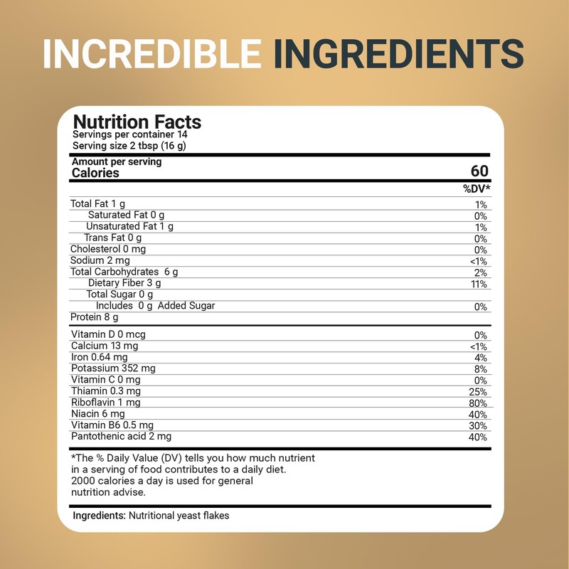 - 𝗡𝗨𝗧𝗥𝗜𝗧𝗜𝗢𝗡𝗔𝗟 𝗬𝗘𝗔𝗦𝗧 𝗙𝗟𝗔𝗞𝗘𝗦 - These flakes are non-fortified! This means our flakes don't contain synthetic vitamins that you might find in other brands. Sprinkle your desired amount on your salad, scrambled eggs, soups, stews, broths, and many other foods for a natural source of vitamin B.