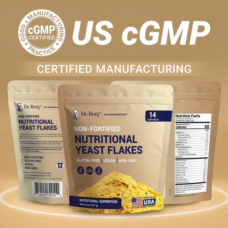 Dr. Berg Premium Nutritional Yeast Flakes - Delicious Non-Fortified Nutritional Yeast with Naturally Occurring B Vitamins - 8oz