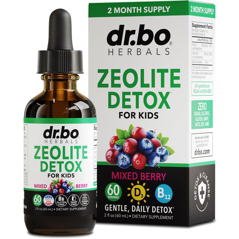 - Gentle: 2 month supply daily support great for kids & adults; extra strength Dr. Bo Zeolite Detox for kids liquid drops has a great berry taste for children to enjoy clinoptilolite zeolite drops