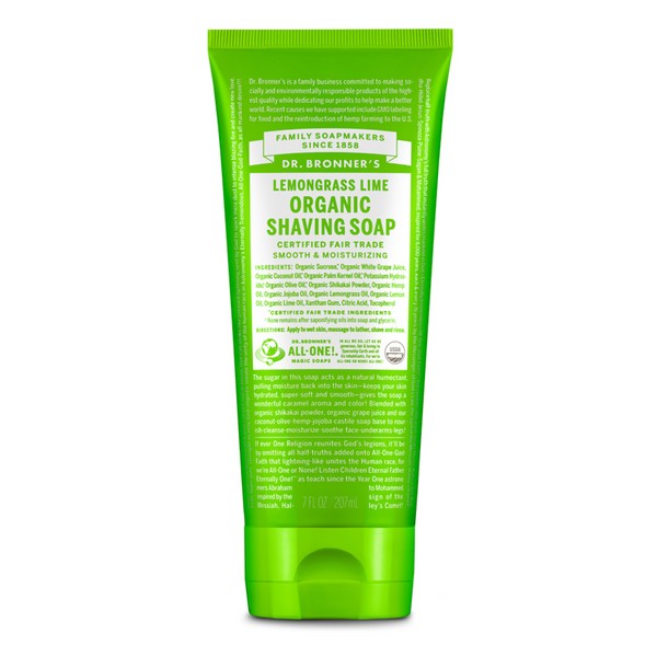 Dr Bronner's Lemongrass and Lime Organic Shaving Soap is suitable for both men and women, giving you a close, smooth, clean shave without any synthetic ingredients. It is highly moisturising and suitable for those with sensitive skin.