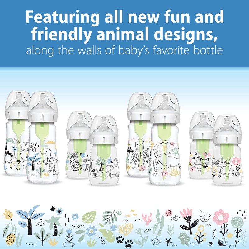 Dr. Brown’s Natural Flow Anti-Colic Options+ Wide-Neck Baby Bottle Designer Edition Bottles, Ocean Decos, 9oz/270ml, Level 1 Teat, 2-Pack, 0m+