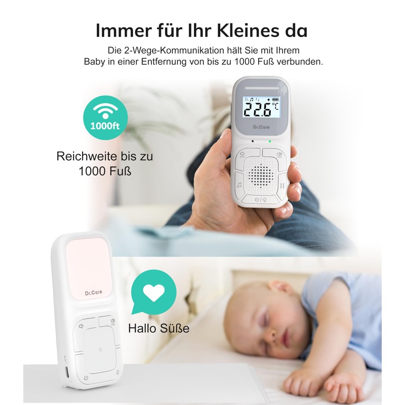 - What You Get: At Dr. Care, we help every parent embrace the joy of parenthood without sacrificing your personal time. Package Contents: Dr. Care Neo baby audio monitor parent unit x1, baby unit x1, charging cable x2, power adapter x1, user manual x1. Enjoy a 1-year quality warranty with an additional 6-month warranty upon registration, plus 24/7 customer support.