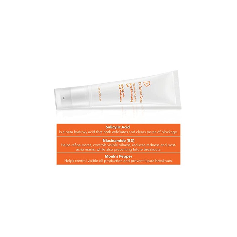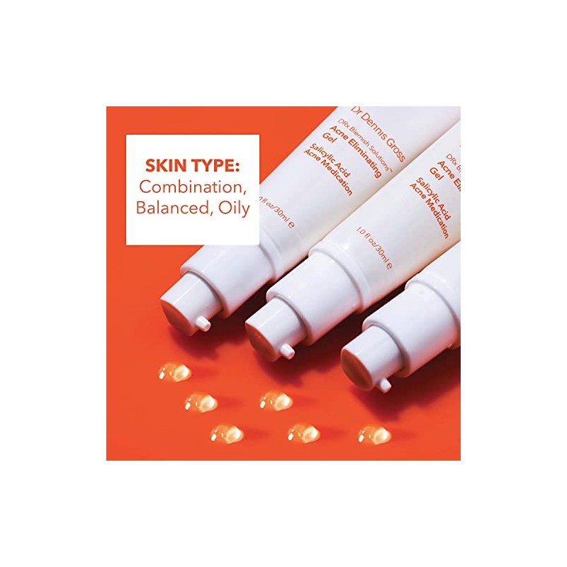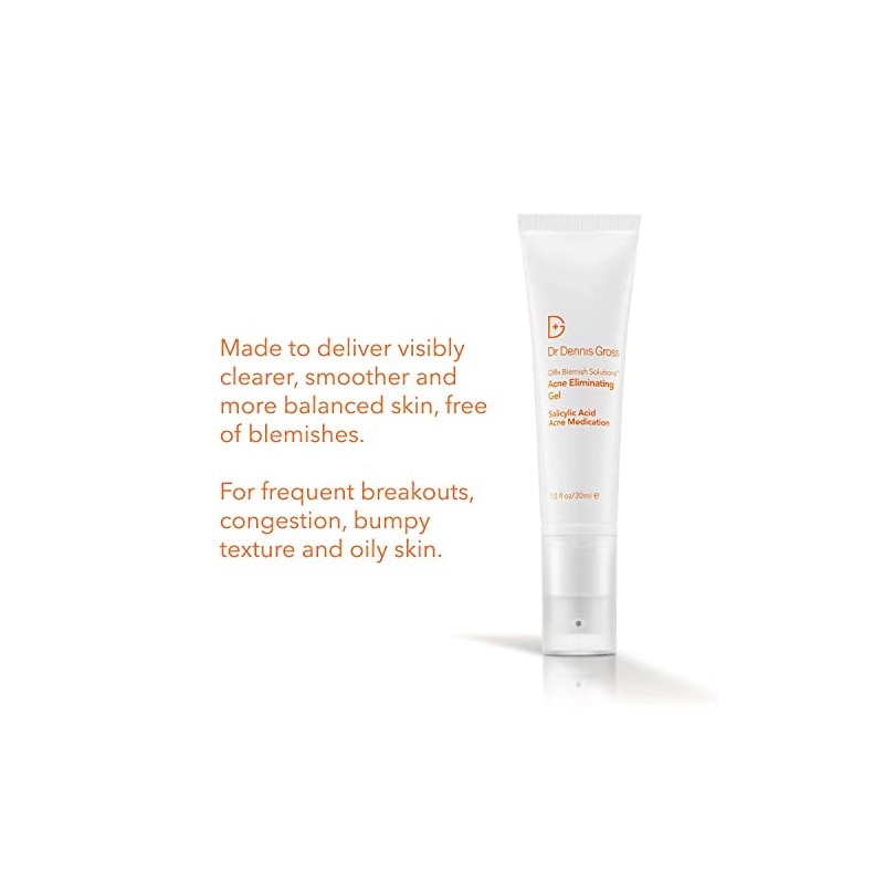 Dr Dennis Gross DRx Blemish Solutions Gel para eliminar el acn para brotes frecuentes, congestin, textura de baches y piel grasa, 1 fl oz 30 ml