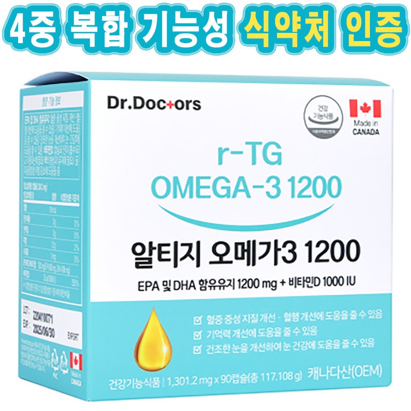 Dr. Doctor's Altige Omega 3 1200 3-month supply can help improve blood circulation, memory, dry eyes, blood flow and eye health / 닥터닥터스 알티지 오메가3 1200 3개월분 혈행 기억력 건조한눈 개선 도움 줄수 있음 혈액 흐름 눈건강