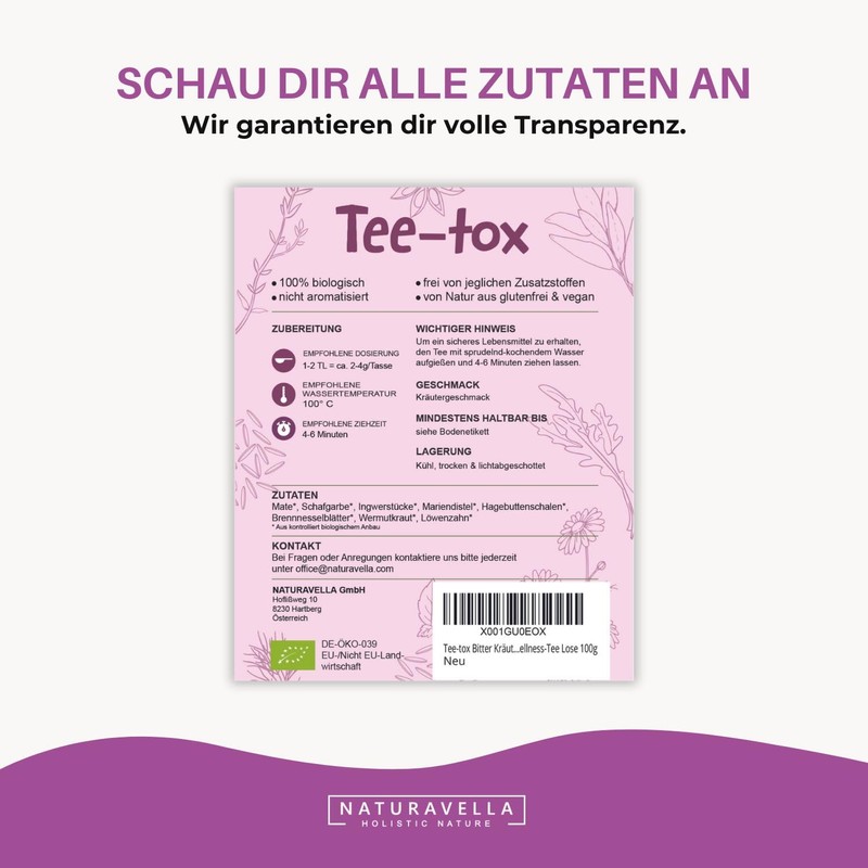 • Easy to use – quick and uncomplicated intake: LeberKraft is the finished superfood mix for a fresh liver smoothie, liver caps are taken with water, tea tox is enjoyed as a bitter tea blend.