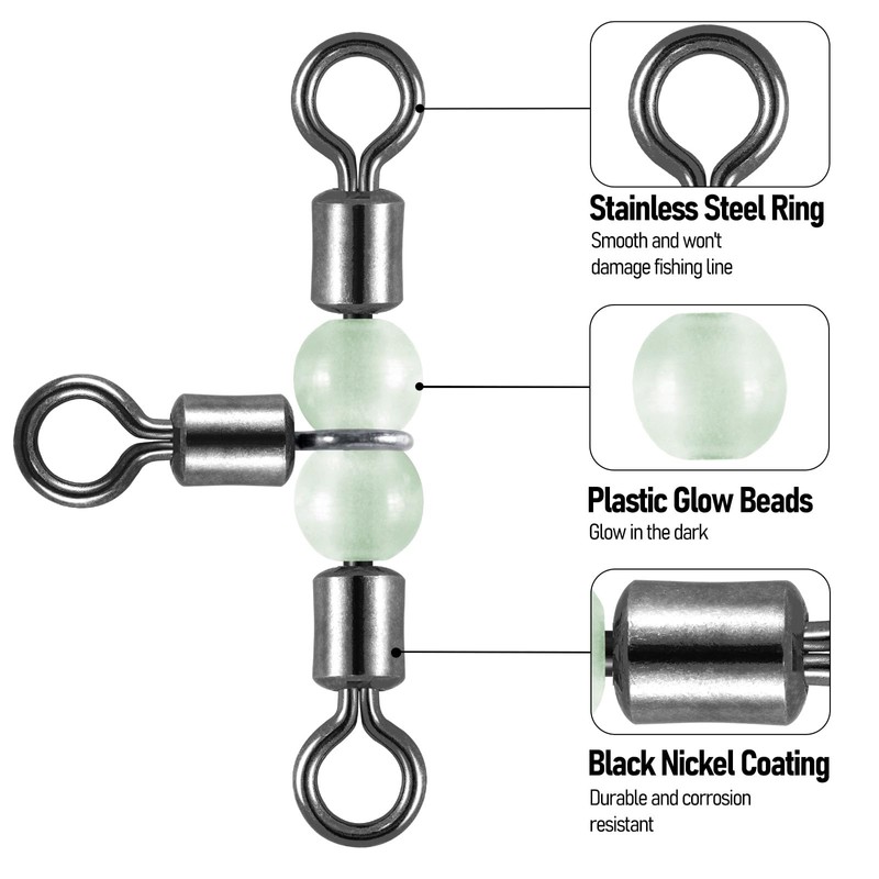 - 【Corrosion Resistant】The 3-way fishing swivels are made of brass body with stainless steel rings and plastic glow beads, provide the strength and corrosion reisistance you need.