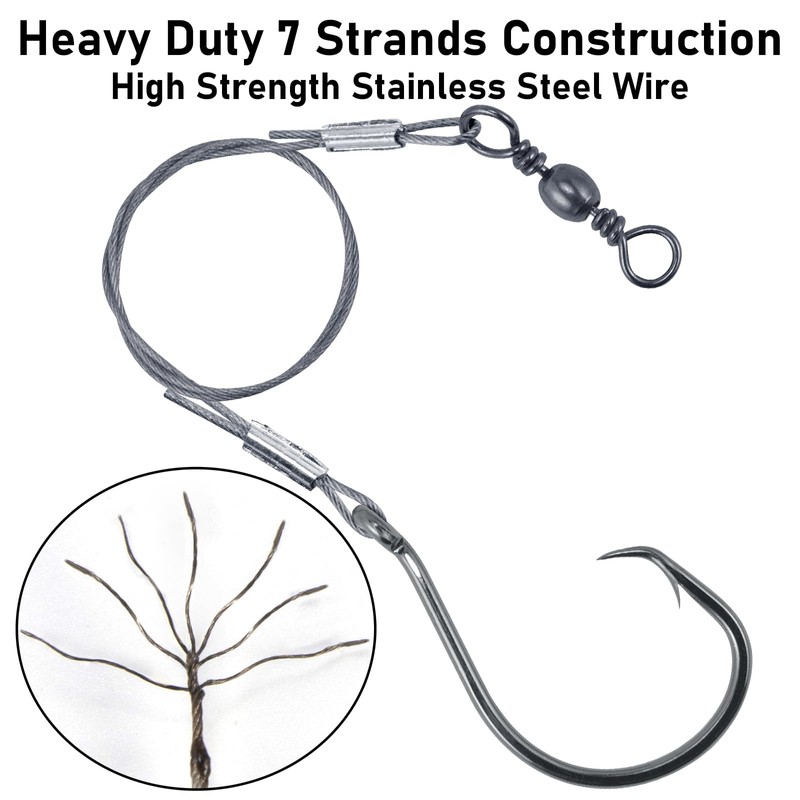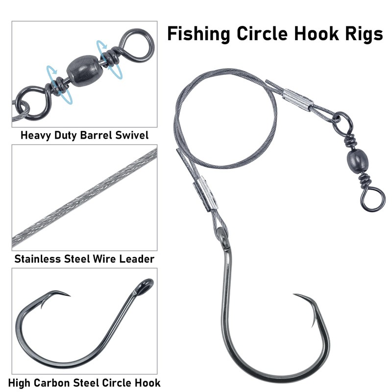 - Durable Construction: Our Saltwater Fishing Circle Hooks Rigs are crafted with 12" 7 Strand Stainless Steel Wire, ensuring strength and longevity for your fishing adventures. Catch fishes from the beach, boat, pier, or jetty - it's easy and fun for everyone!