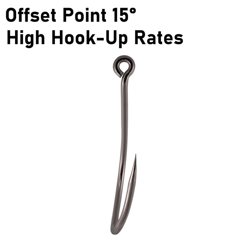 • Offset Hook: Hooks with offset beak point, sharp hook points, and barb improve hook-up rates,greater penetration,will never break or bend out on giant fish.