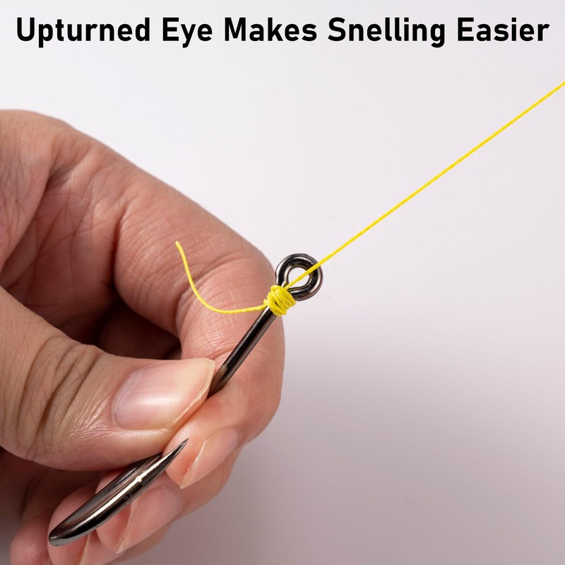 • Hook Eye: The upturned eye keeps the hook running straight and true when tied on with a simple snell knot.