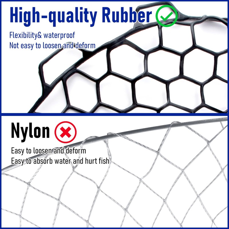 • This fishing net is made from high-quality rubber with excellent flexibility and durability. Super easy to replace and give new life to an old frame