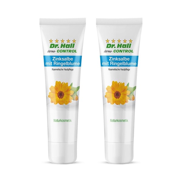 Dr. Hall Zinksalbe mit BIO Ringelblumenextrakt, naturkosmetik, entzündungshemmend und pflegend mit Bienenwachs und Mandelöl, 2 x 50 ml