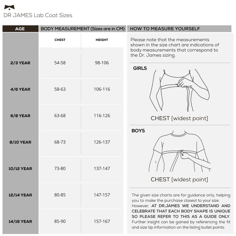 Dr. James Childrens Unisex Lab Coat with Safety Stud Buttons 6-8 White