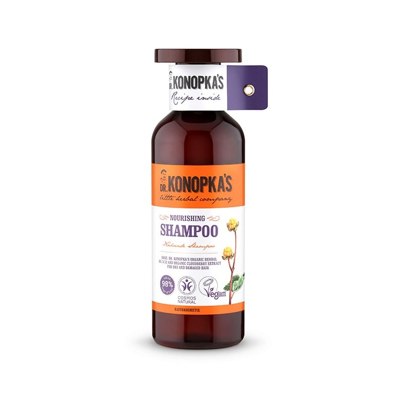 The DR. KONOPKA Nourishing Shampoo contains the herbal oil no. 52 to repair and regenerate damaged and dry hair. Cloudberry extract moisturises and lends the skin wonderful shine and boost elasticity. Protects the skin from environmental aggressors.