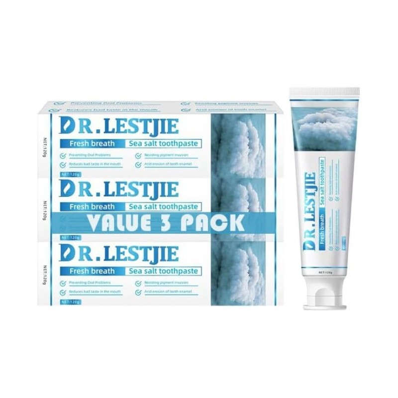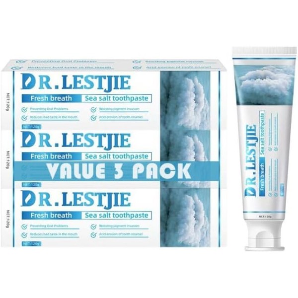 DR.LESTJIE - Sea Salt Toothpaste Minty Flavour Cleaning Toothpaste Helps Remove Surface Stains Whitens Teeth Strengthens Tooth Enamal Kids Friendly SLS Free Non-Toxic 4.23oz-3Pack