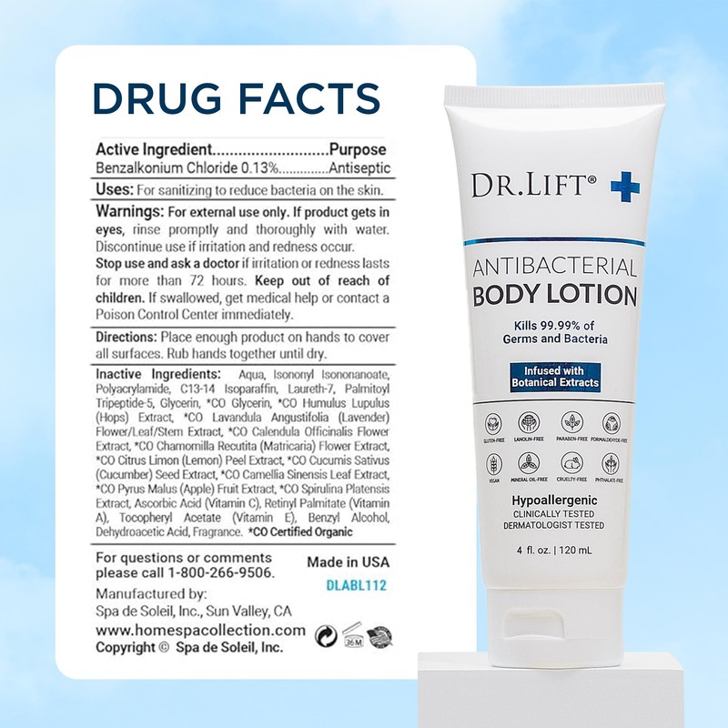 - ONE-OF-A-KIND: Dr. Lift Antibacterial Body Lotion is specially formulated to kill germs and bacteria, while moisturizing.