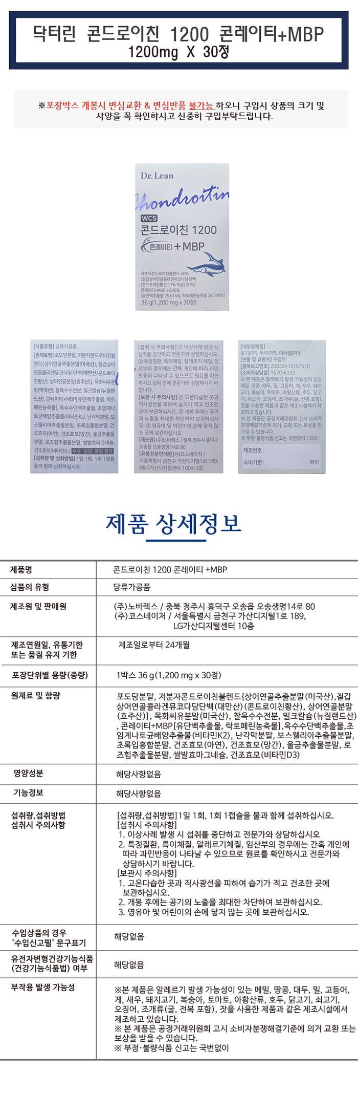 Dr. Lin Chondroitin 1200 Conrate + MBP 1200mg x 30 tablets 6 boxes CZ / 닥터린 콘드로이친 1200 콘레이티 + MBP 1200mg x 30정 6박스 CZ
