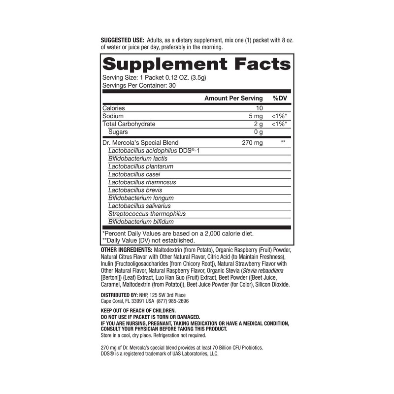 Dr. Mercola Complete Probiotics Powder Packets 30 Servings (30 Packets) (70 Billion CFU), Supports Immune Health, Supports Blood Pressure Already in Normal Range, non GMO, Soy Free, Gluten Free