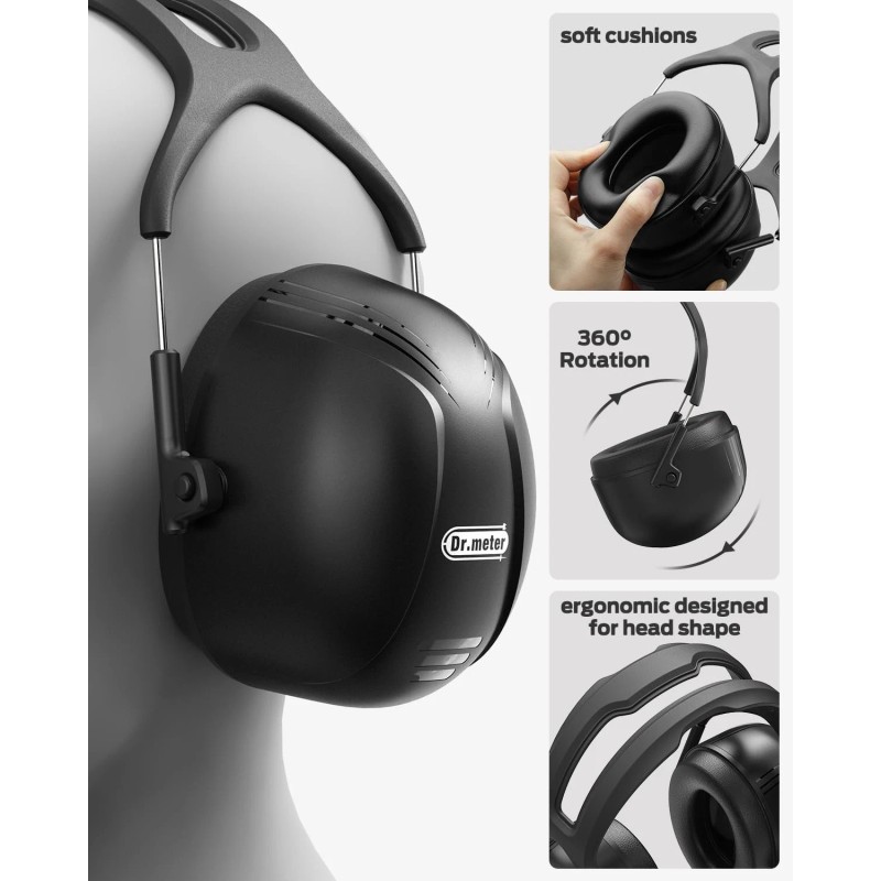 Dr.meter Ear Protection Earmuffs for Gun Range, 2 PACK SNR 35dB Hearing Black