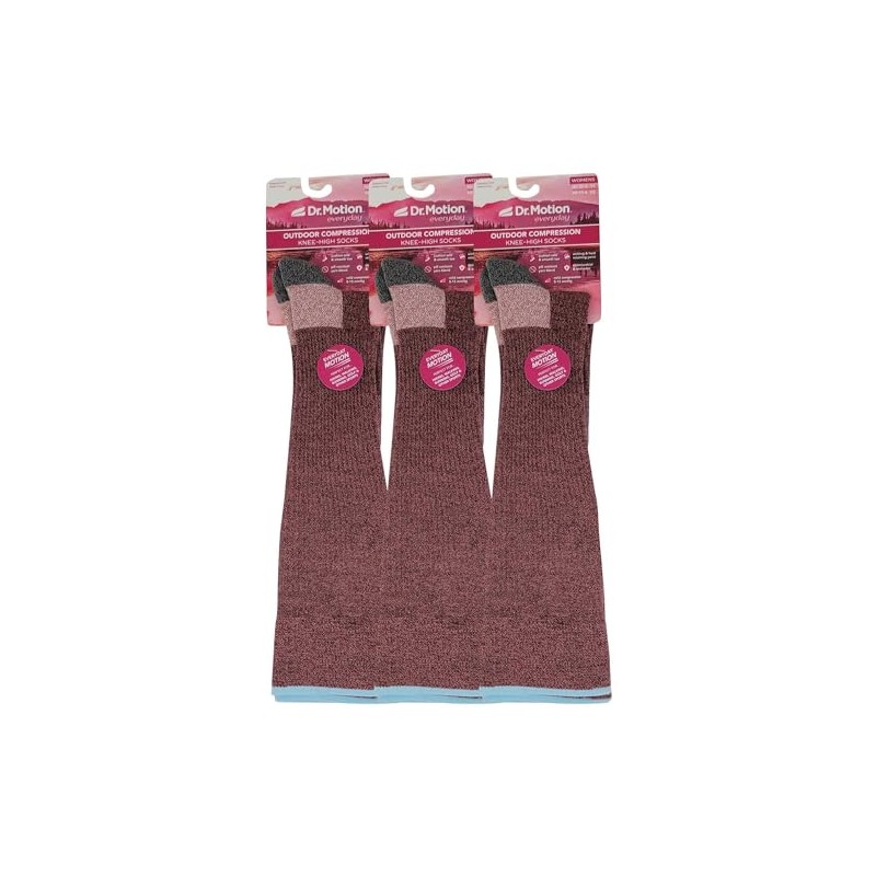 Dr. Motion Compression Knee High Socks (3 Pairs), Arch Support Outdoor Running Hiking Socks for Women (US, Numeric, 9, 11, Regular, Regular, Wine)